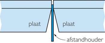 • Vloerplaten mogen nooit koud tegen elkaar wordengeplaatst. Per voeg dienen minimaal 2 stuks houten afstandhouders te worden geplaatst.