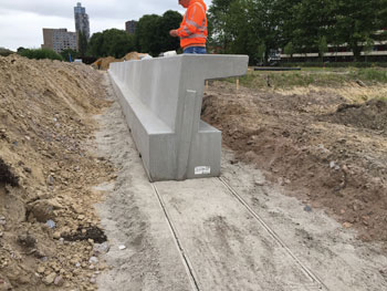 16. Na het stellen van alle elementen achterzijde aanvullen met grond.
