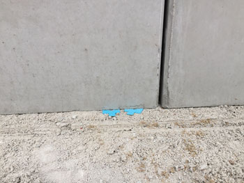 6. Zet met een strak koord de gewenste lijn uit. Neem hiervoor de buitenkant voet (achterzijde) waarbij bovenkant voet gelijk met maaiveld komt te liggen. Bij het uitzetten van het koord is het raadzaam om de dikte van de hijslussen mee te nemen. Door het koord iets ruimer te zetten wordt voorkomen dat de elementen het koord belasten/verschuiven (foto 2).