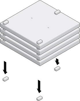 De rotondeplateau-elementen stapelen op een vlakke en stabiele ondergrond voorzien van drie steunpunten met behulp van stapelstenen (betontegels of klinkers van gelijke dikte). Zorg dat het onderste rotondeplateau-element vrij blijft van de ondergrond. De stapelstenen dienen loodrecht onder elkaar te worden gelegd (zie figuur 1). Rotondeplateau-elementen dienen één voor één opgestapeld te worden tot een hoogte van maximaal 4 stuks met behulp van de hijsvoorzieningen.Ondergrond / fundatie / legbed