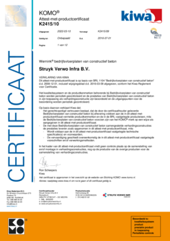 • Vloerplaten dienen opgenomen en gelegd te worden met een vacuüm hijssysteem of met behulp van evenaar en bijpassende gecertificeerde hijssleutels van Struyk Verwo Infra. Andere hijsmiddelen en hijssystemen worden niet geadviseerd.